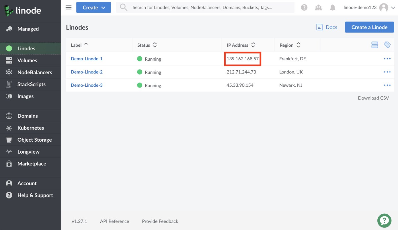 You can also quickly reference your Linode’s IP addresses from the Linodes page: