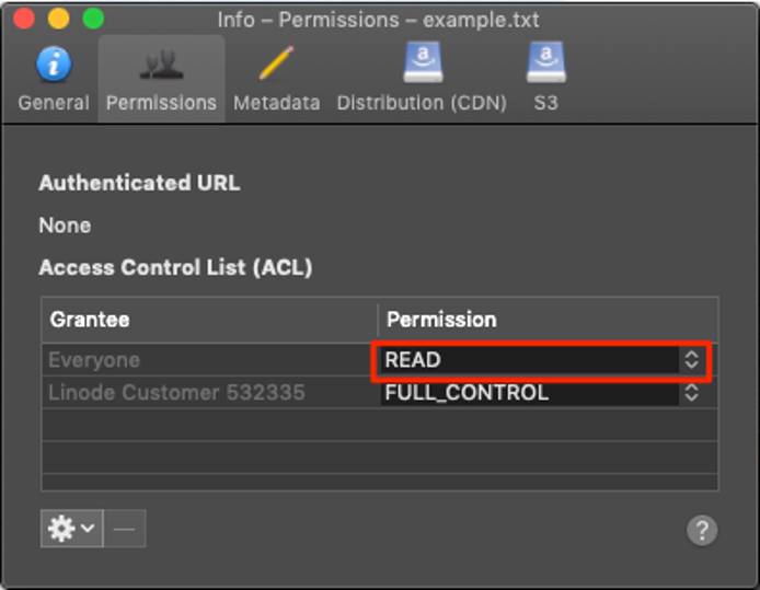 upload: 'example.txt' -> 's3://my-example-bucket/example.txt' [1 of 1] 13 of 13 100% in 0s 485.49 B/s done Public URL of the object is: http://us-east-1.linodeobjects.com/my-example-bucket/example.txtNote